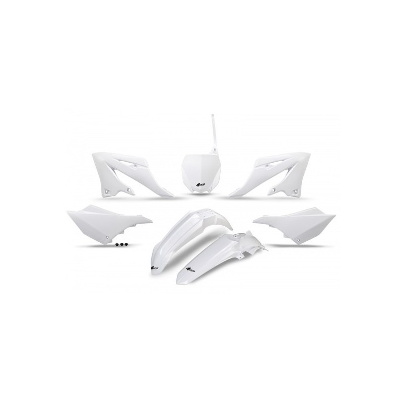 Le kit plastiques UFO comprend les éléments nécessaires pour restaurer ou transformer l’apparence de votre moto. Le contenu peut varier en fonction de la marque et du modèle, mais inclut généralement :